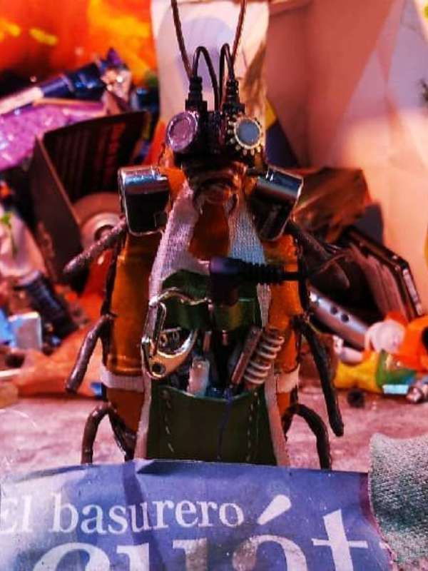 An engineer cockroach reuses parts from its garbage can to encourage the growth of a plant.