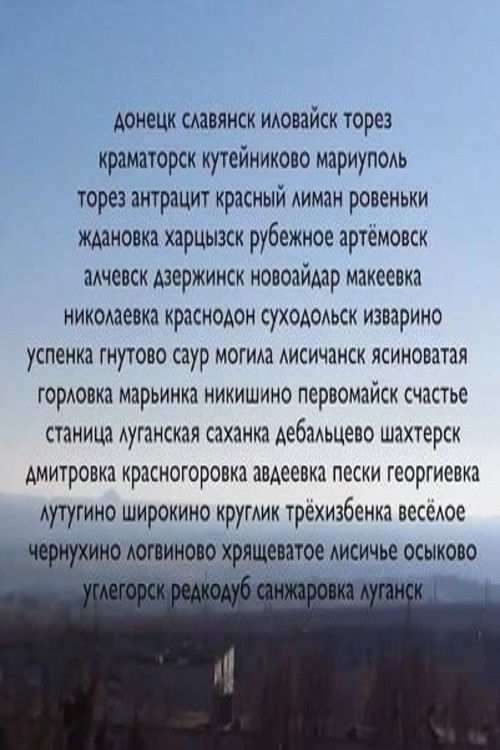 312 minView trajectories in a war broadcast online. The film uses materials taken by anonymous authors in the ATO (antiterrorist operation) zone between 2014 and 2018 and posted on social networks. The authorship of these videos could not be established.