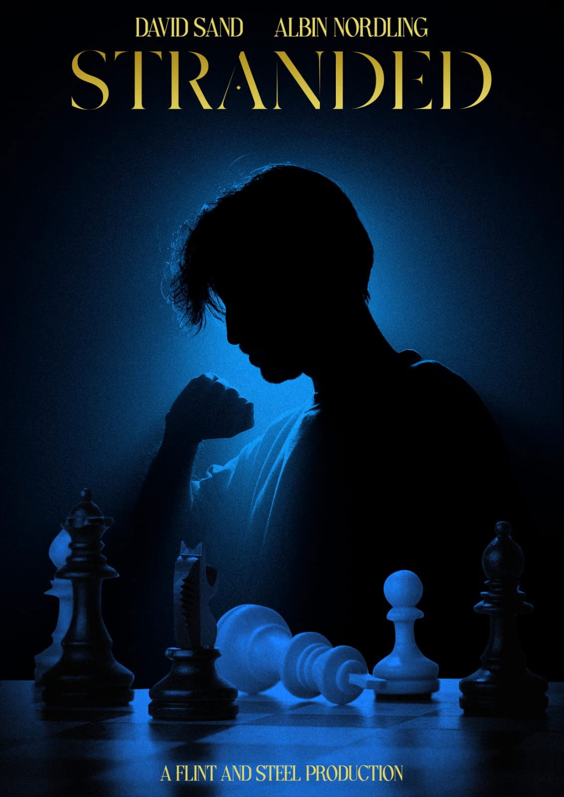 Stranded with his own subconsciousness. A man plays chess with himself.